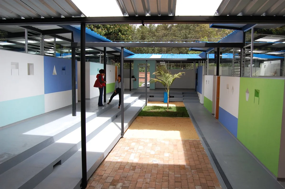 Vueltacanela kindergarten was planned and built from the ground up, following the contours of an empty plot. The design uses bright and colourful spaces and features a main ‘room’ that is open to the sky; designed as an amphitheater for both work and play – physically and emotionally giving the building a sense of borderless freedom.